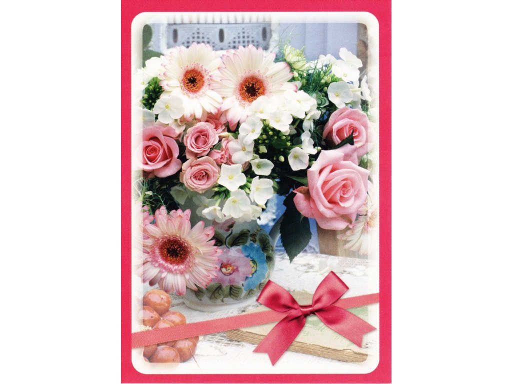Pohlednice květiny s mašličkou 1