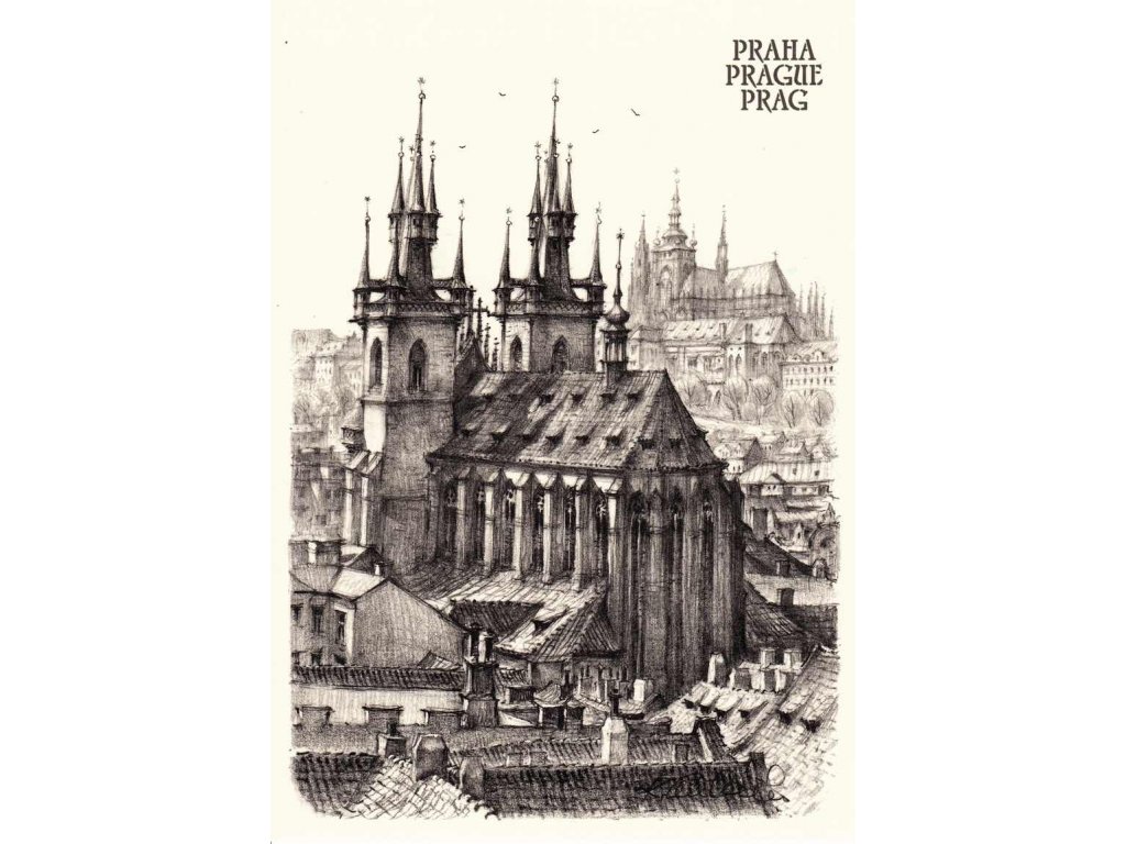 Pohlednice Praha, panorama Starého Města