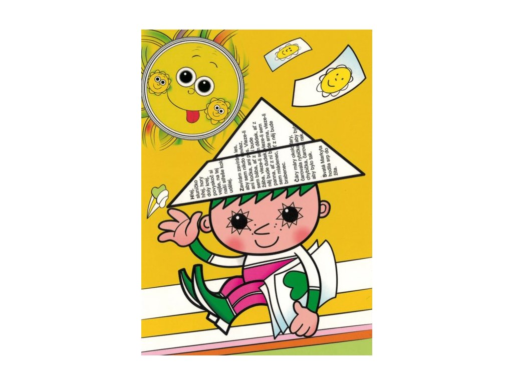 Kreslený chlapeček Večerníček v papírové čepici, jehož autorem je malíř Radek Pilař.