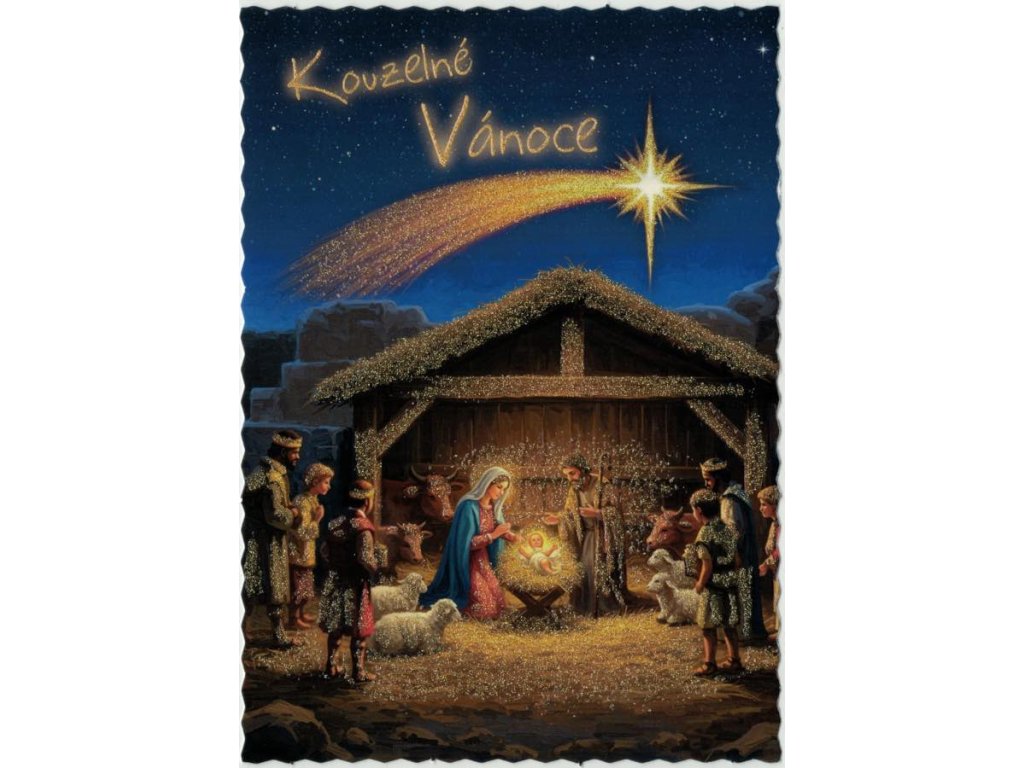 Pohlednice Kouzelné Vánoce (glitr)
